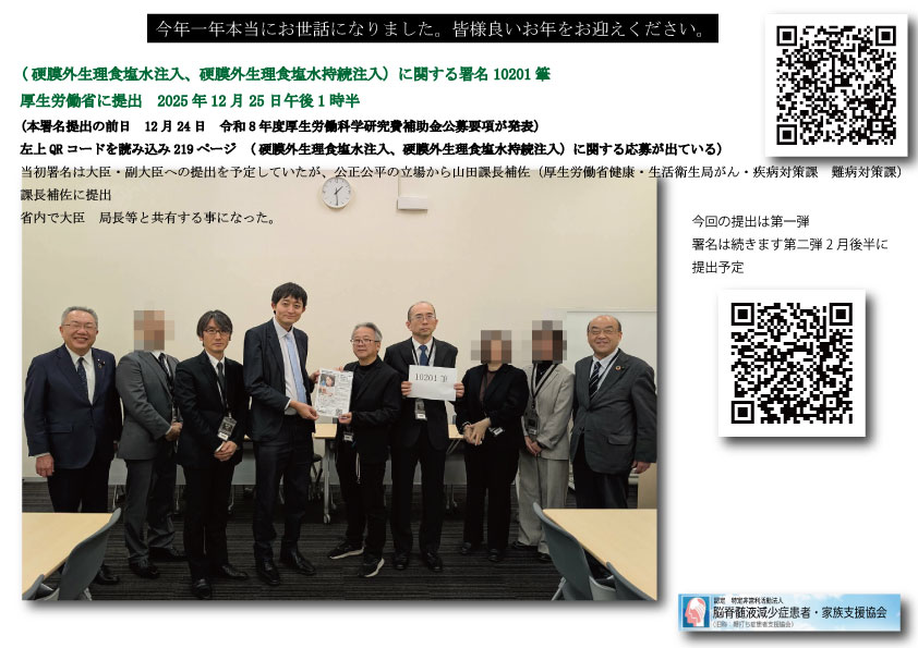 いつも、脳脊髄液減少症患者・家族支援協会を支えていただき、本当にありがとうございます。