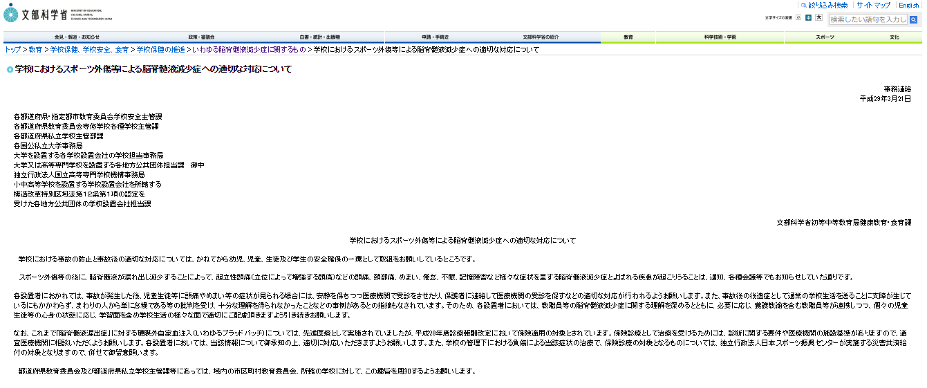 ・タイトル「学校におけるスポーツ外傷等による脳脊髄液減少症への適切な対応について」