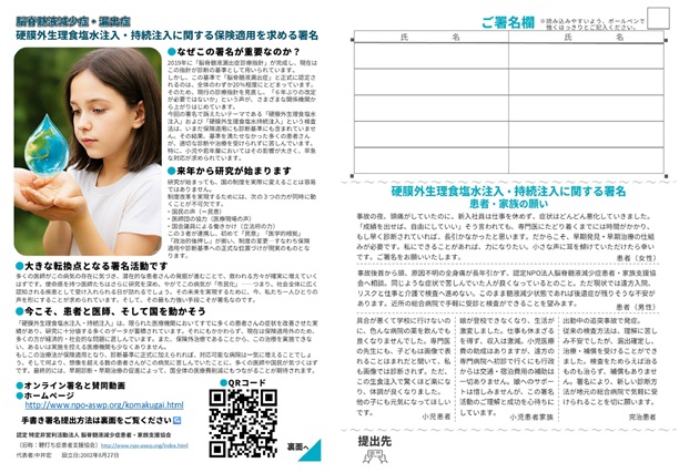 (硬膜外生理食塩水注入、硬膜外生理食塩水持続注入)に関する署名